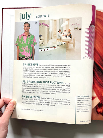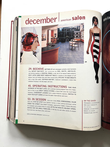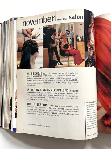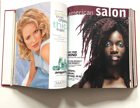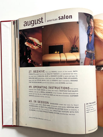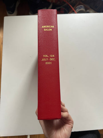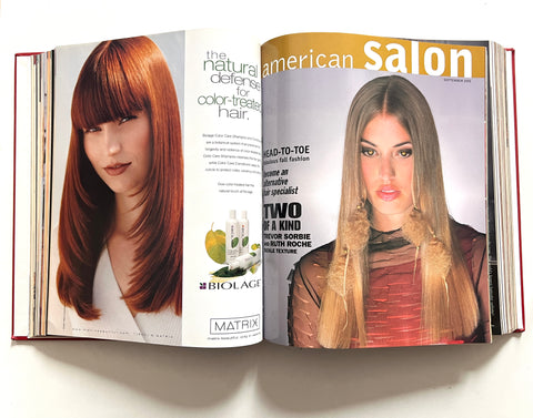 6 monthly issues of beauty industry magazine American Salon in red leather library binding. Also includes bimonthly supplemental issues (Cut&Dry, International Expert). Great condition.
