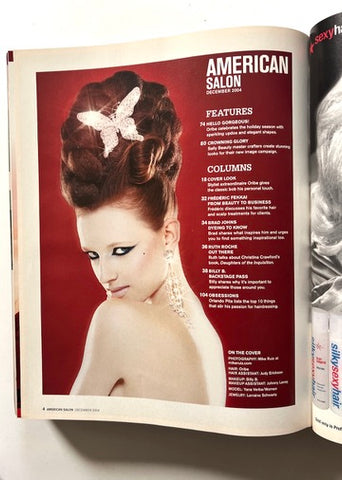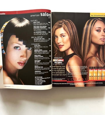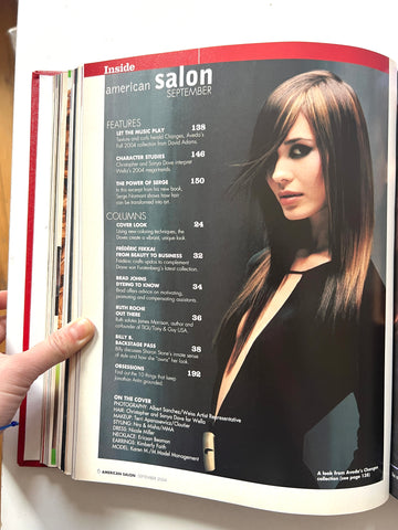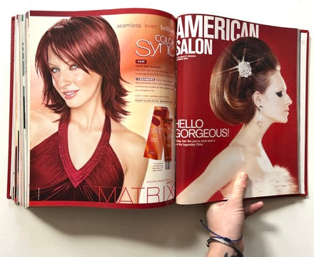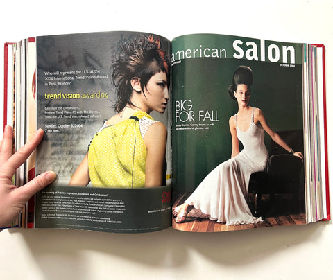 6 monthly issues of beauty industry magazine American Salon in red leather library binding. Also includes bimonthly supplemental issues (Cut&Dry, International Expert). Great condition.