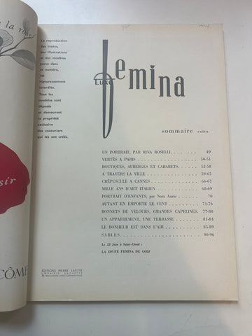Femina was a French fashion magazine published from 1901 to 1964. "La revue idéale de la femme et de la jeune fille" ("The ideal magazine for women and girls”).