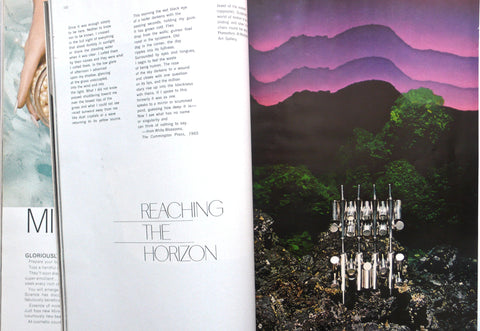 A flashy issue. Cover by Silano. Model wearing an Oscar de la Renta. Hiro photographs capes. Arnaldo Pomodoro jewels. Chester Weinberg. Neal Barr. Swimsuits. Small closed tear on front cover, and small area of loss at back. Some sunning. Some age-toning inside. Otherwise a very nice tight copy with strong spine.