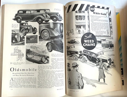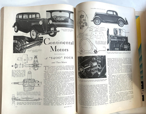 Large, thick magazine. 244 pages of new cars, circa 1933. Some light edgewear and rubbing, with small old tape repair, and previous owner's name written neatly in the "T" of Motor, as visible in the photograph. A nice bright copy for its age.
