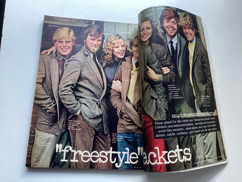 Peggy Dillard on cover, photographed by Albert Watson. Goldie Hawn feature. Arthur Elgort photographs Ungaro fashions, Courrèges, Missoni, Armani, etc. Gregor von Rezzori. Light wear, light creasing, faint sunning and slight loss at extremities.