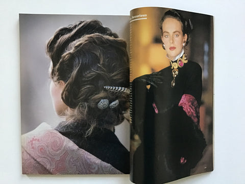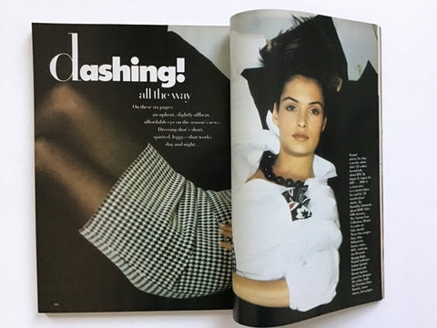 Paulina Porizkova on cover photographed by Richard Avedon. Entertaining by William and Chesbrough (Chessy) Rayner...in Bill Blass’s garden. Living by Barbara Plumb. Romeo Gigli. Sheila Metzner photographs fashions on Virgin Gorda. Light shelf wear. Behind the scenes with Baryshnikov.