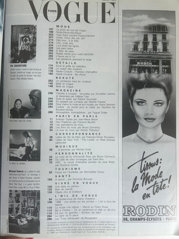YSL fashion featured on the cover. Section on Notre-Dame-des-Fleurs. Haute couture special.