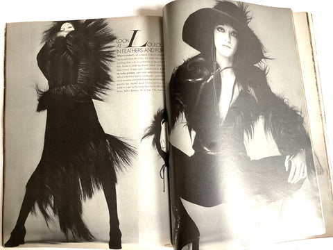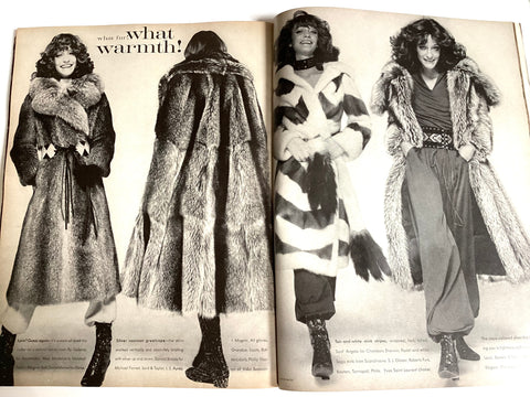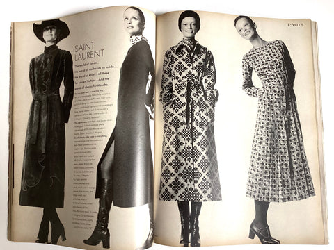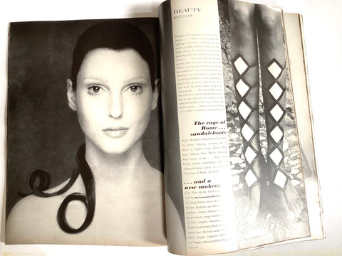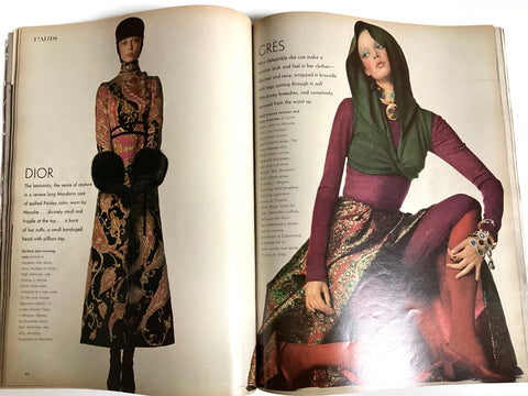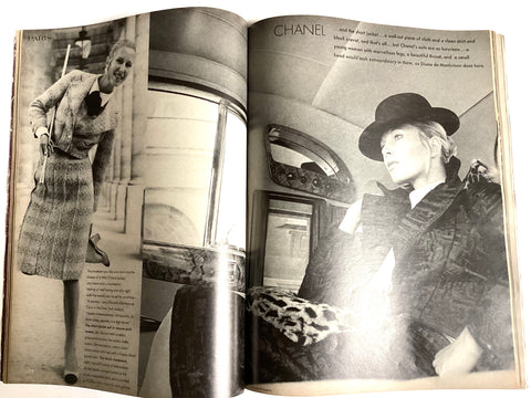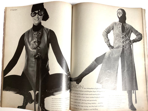David Bailey cover. Contessa Olsece photographed at the Villa dei Vescovi by Horst. Paris fashions by Diana Vreeland. Yves Saint Laurent. Chanel. Pierre Cardin. Christian Dior. Madame Gres. Courrèges. Ungaro. Loulou de la Falaise. Nice copy with very light wear, light creasing. Age-toning.