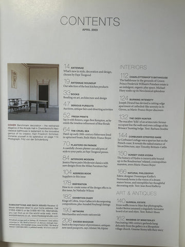 Cover: Arcade Hall in Charlottenhof's neoclassical bathhouse. Dominique Kieffer's Normandy home. The Boudourises' mansion in Hydra. Le Corbusier's coastal refuge. Brissac hunting lodge adorned with macabre kills. Joseph Dirand apartment.