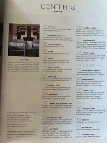 From The World of Interiors website - Someone to watch over you – guests can sleep soundly in the tall beds in Francesca Tempora Casana's Tuscan farmhouse, which provide protection against draughts. Francesca created the African-design wall hanging.